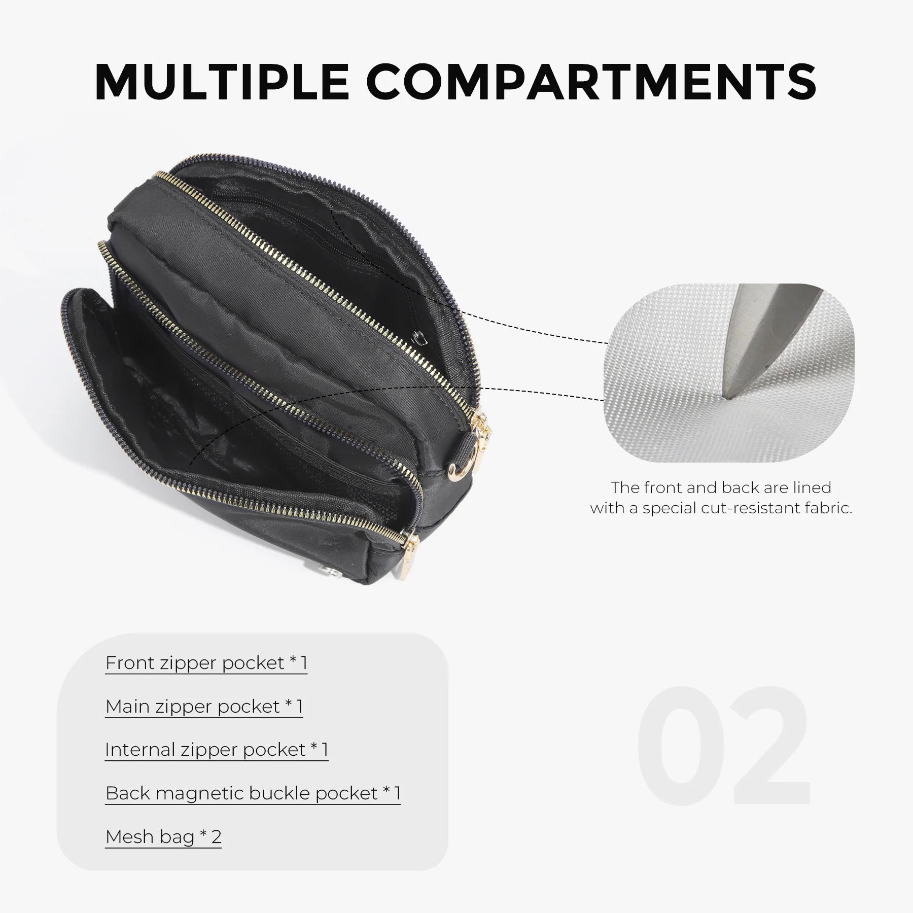 Smart Organization - 9 pockets including dedicated phone & card slots